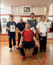 Eintrag vom 02.04.2017, Prüfungslehrgang mit Sifu. Marek bestand den 1. Schülergrad, Nora den 2. und Josh den 5. Herzlichen Glückwunsch, richtig cool :-)